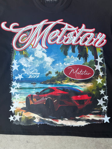Displayed on a quality black shirt, the “MS Isola de Ferrari” design is printed in red, white, blue and green large across the front
