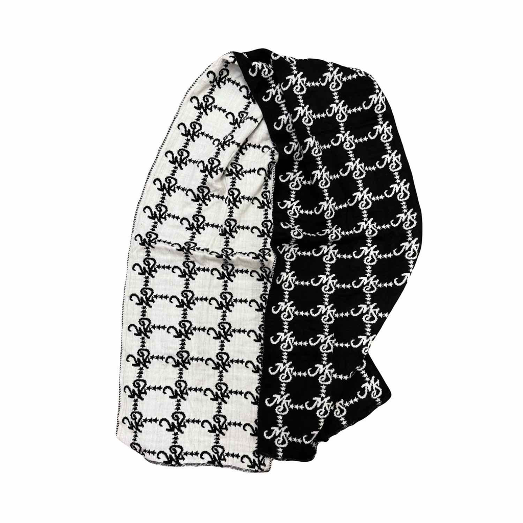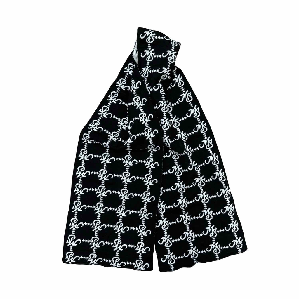 Displayed on a quality black knit scarf the “MS Jacquard” design is printed all over in white